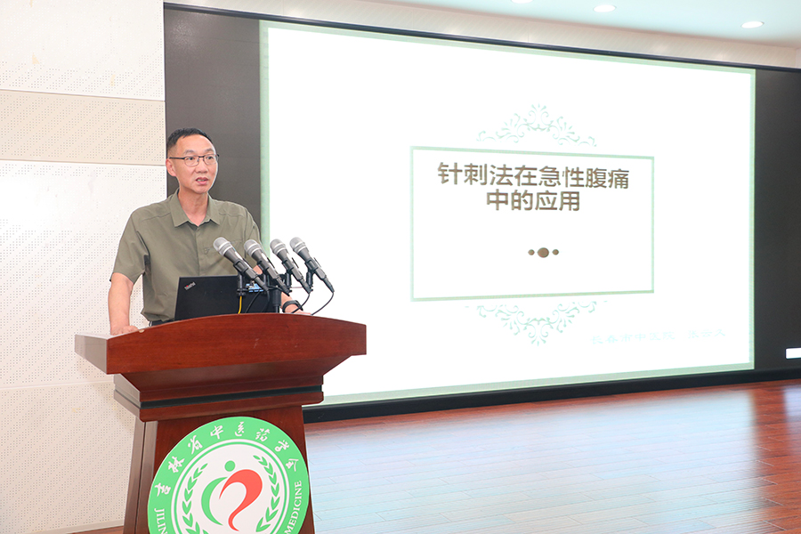 ▲吉林省中医药学会中医急症专业委员会副主任委员、色情片 总部肝脾胃病科主任张云久与大家共同探讨了《针刺镇痛在急性腹痛中的应用》并现场进行实际操作