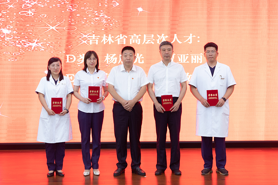 其中,为石贵军书记颁发全国五一劳动奖章前,长春市总工会党组成员、副主席高健通过视频,向医院全体医师致以诚挚的问候,向石贵军书记表示衷心的祝贺。