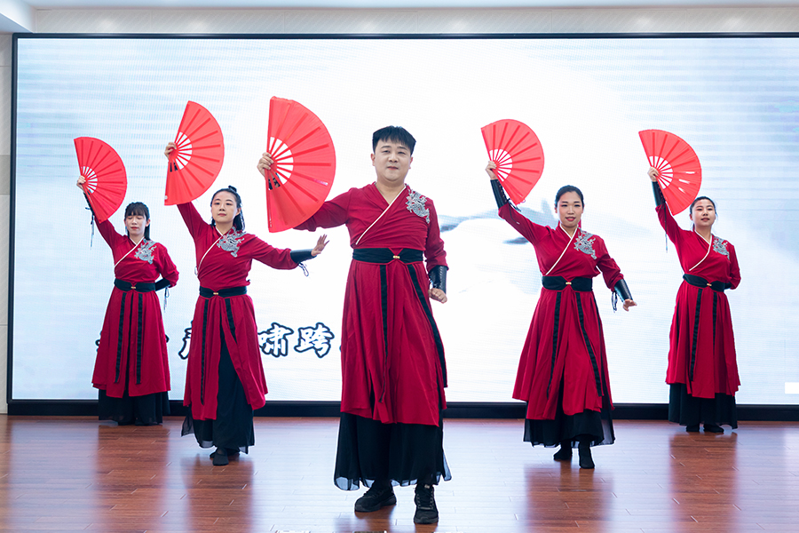 ▲韩婧等人带来的太极扇表演挥扇生风,演绎太极韵味