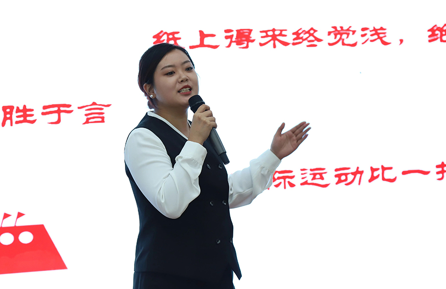 一堂精彩的形势政策教育过后,“习语用典”品读宣讲活动正式开始。来自医院的宣讲团成员依次走上台,对习近平总书记系列重要讲话中引用的古代典籍和经典名句进行了生动阐释。大家或慷慨激昂、或深情款款,以饱满的热情,展现了新时代青年医护人员的风采和才华,赢得了现场观众的阵阵掌声。