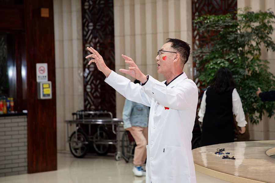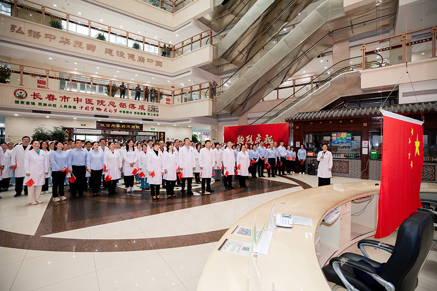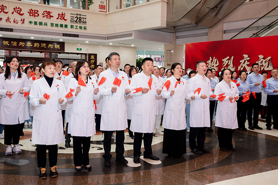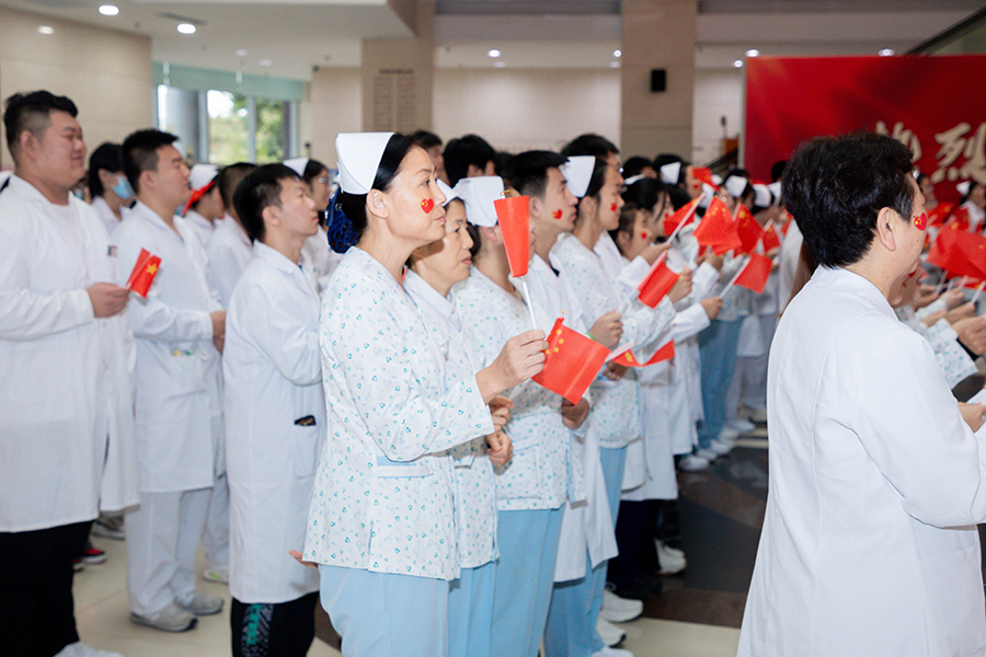 医院党委书记石贵军,院长杨启光,副院长曹亚丽、杨娜、钱锐,纪委书记王妍,以及中层干部和职工代表整齐列队,手持国旗,满怀激情地等待着那激动人心的时刻。