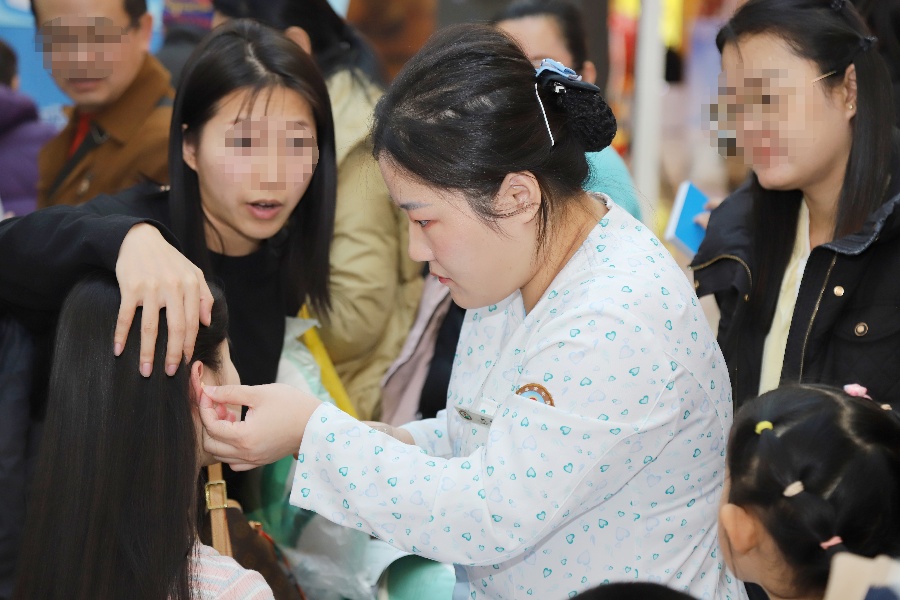在适宜技术体验区,中医特色疗法大放异彩,吸引众多市民驻足参与。总部心病科带来了耳穴压豆疗法,通过刺激耳部特定穴位,调节心神、改善睡眠,深受中老年群体青睐;平阳部肛肠科则同步推出耳穴压豆与传统刮痧疗法,结合冬季常见病防治需求,为市民提供调理气血、疏通经络的中医外治方案。活动现场,体验者络绎不绝,大家在体验后纷纷感叹中医药文化博大精深。