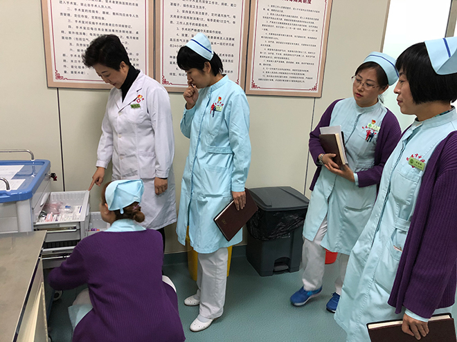 药品安全管理专项督导检查由护理部带领院质控小组组长完成,着重检查了各科室急救药、毒麻药和常备药等方面的工作。对各科室的抢救药品、急救车物品、毒麻药和常备药品的数量及效期逐一排查。