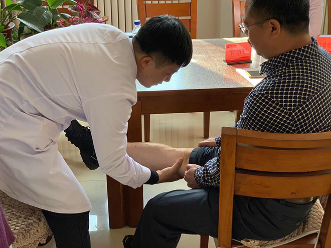 义诊活动现场,老年病科邢秀丽主任、眼科韩光主任、针灸科张亚菊主任、心病科陈淑玲主任医师、肛肠科于波主任医师、糖尿病科李戈副主任医师、脑病科吕宏魁主治医师、外科张喜峰主治医师、骨科董玉柱主治医师,妇科于金平主治医师、耳鼻喉科邵卓主治医师、皮肤科乔军苹主治医师、急诊科李海燕主治医师的一个个座位俨然成了一间间小“诊室”。老师们向医生提起,平时工作繁忙,压力大,很少进行户外体育锻炼,这对身体健康有很大的影响。每位义诊专家都耐心的听取教师们的困惑,并为之提供专业的解答。