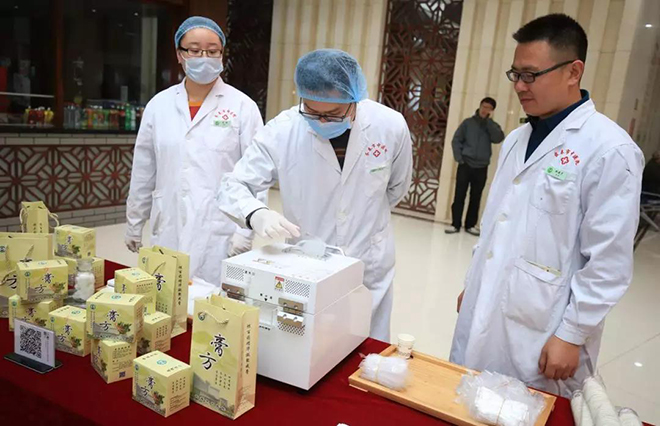 膏方是如何炼成的?都需要哪些辅料?活动现场,医院工作人员现场制膏引来众人关注。以温阳膏为例,它的出炉至少需要6个步骤:浸泡、煎煮、去渣沉淀、浓缩、收膏、包装。现场,制剂人员一边制膏,一边讲解全过程,而需注意的地方就更多了,比如去渣能保持膏方的好口感,更需要有丰富经验人员操作,比如在收膏的过程中,要将膏方熬至滴水成珠的程度,这份火候的拿捏是需要一定功夫的。活动现场,为了让大家即可品尝到新鲜出炉的膏方,工作人员现场熬制了两仪膏,这一剂补中益气、滋阴补血的膏方19分钟便从颗粒完成了变身。