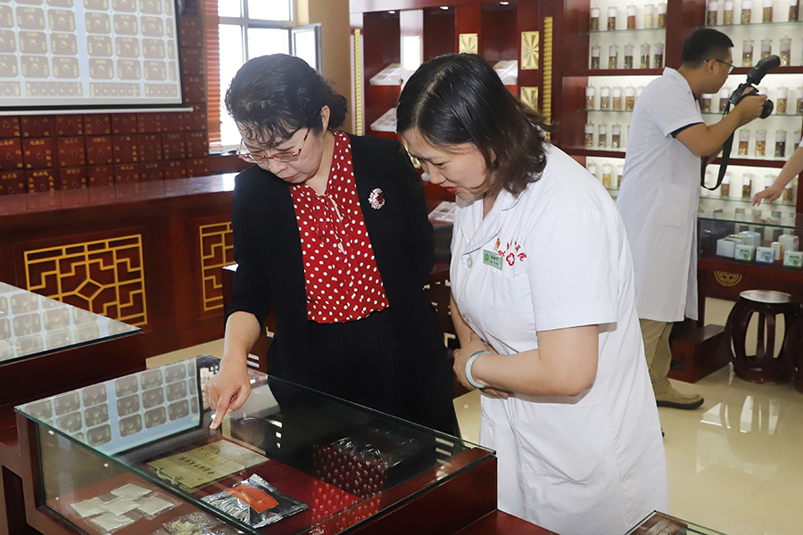 调研一行人先参观了医院的药房、煎药室,在药品展示台前孙良金院长详细介绍了中药的煎制流程,感受中药的制作技艺,当了解到中药自制剂的生产流通情况,对医院坚持采购道地取材的做法给予充分认可。