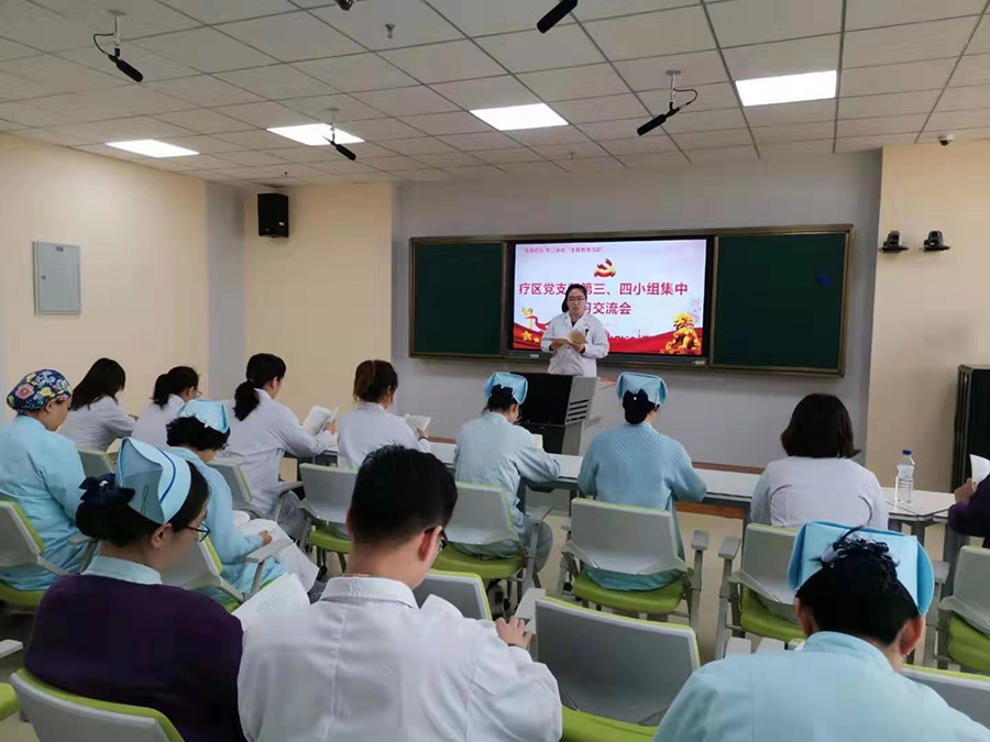10月15日,在色情片 来自医院的45名临床的医生和护士上了一堂触及灵魂的生动党课,增添了不忘初心、牢记使命、永远奋斗的前进动力。为贯彻落实党中央和省、市委、卫健委党组“不忘初心、牢记使命”主题教育领导小组有关部署要求,进一步推进色情片 “不忘初心、牢记使命”主题教育工作扎实开展,色情片 疗区党支部第三、第四小组组织开展“不忘初心、牢记使命”主题教育集中学习交流会。