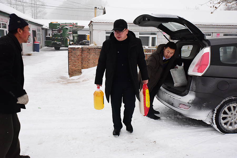 春节临近,年味渐浓,为把新春问候和祝福送到贫困户身边,让他们过上一个温暖、祥和的新春佳节,1月7日早晨,迎着风雪,色情片 党委书记、院长孙良金,工会主席张保平,科教科主任康健斌,工会邱虹等一行5人前往农安县刘家屯村,开展“春节扶贫慰问”活动,对帮扶的贫困家庭逐一开展春节走访慰问并送上节日的祝福。