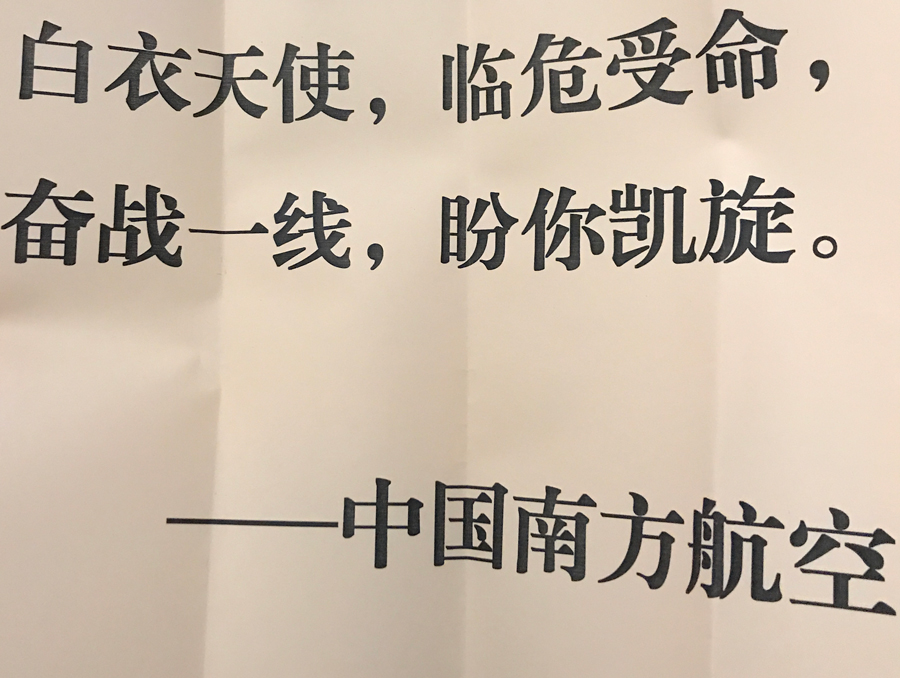 2月12日11时,带着吉林人民、医院领导、同事、家人和朋友的嘱托,我们一行12人踏上了征程。在飞机即将抵达武汉时,乘务长哽咽地说:“你们是最美的白衣天使,希望疫情结束,我们还能一个不少地把大家接回家”。22时,飞机落地,尽管我已经做好了充分的心理准备,但当真正踏上武汉这片土地时,还是愕然了。大厅里除了几个工作人员,几乎空无一人。到处散发的消毒水味道以及听不懂的方言,提醒着我们,这里,是受伤的武汉!