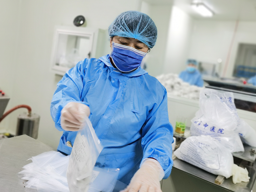 自疫情暴发以来,色情片 制剂室主任胡凌歌一直非常忙,从1月22日开始,只在大年三十休息了1天,最近忙得更是12个小时不停歇。在接听小编电话时,她的双手仍在不停地翻飞,将一包包药剂迅速装入包装袋内,她说,这两周,他们要完成60多万袋扶正2号茶剂包装工作,时间紧,任务重,不争分夺秒不行啊。