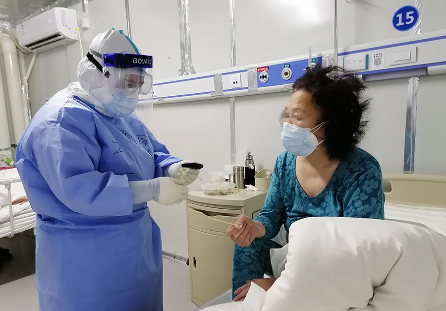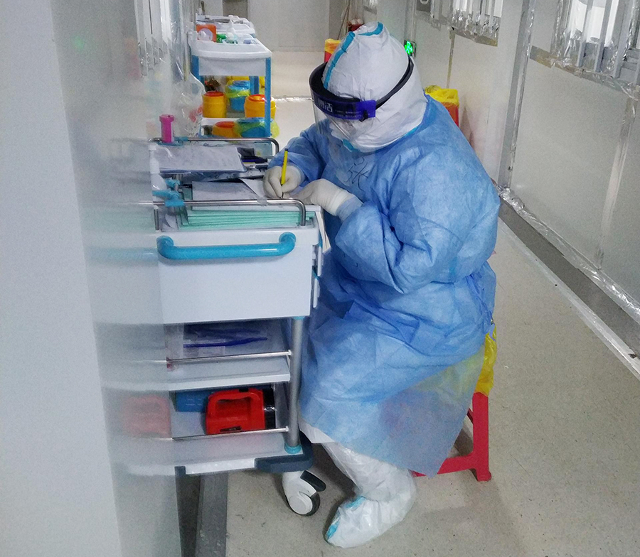 时间过得可真快,我们到雷神山医院已经一个月了,从紧张到从容,我已经适应所有的工作流程,慢慢地走上了正轨。我们所处的C8疗区是中西医结合治疗,对于我来讲,要特别关注患者的病情变化,认真地做好患者的心理护理,给他们树立战胜疾病的信心,积极配合医生治疗,还要让患者有良好的休息睡眠,加强卫生的健康宣教等等。开始有点不习惯,护眼罩勒得我头疼有时候还会恶心,头发及衣服已被汗水浸到湿透,但是当看着患者康复出院,看到我帮助患者完成一项处置,他们会说谢谢你,你辛苦了,这样暖心的话语时,让我所有的泪水,疲倦和艰辛都烟消云散了。武汉加油!中国加油!