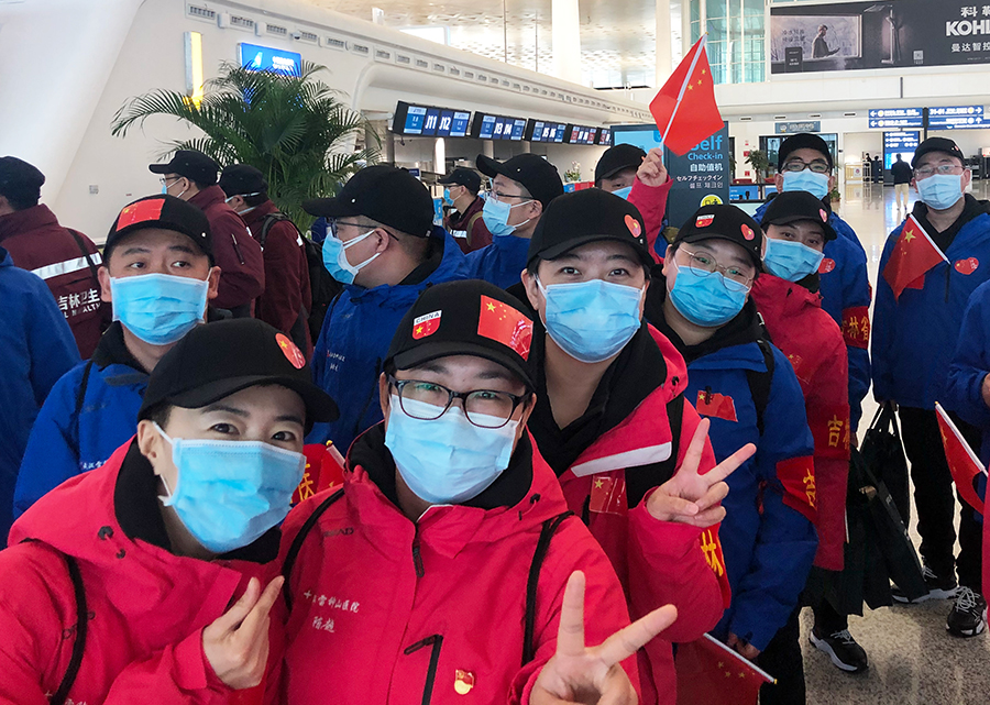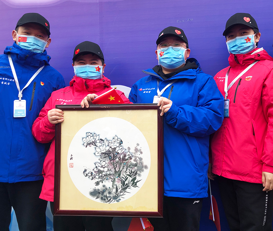 临行前日,雷神山医院特别为吉林省中医医疗队赠送了国画《花好月圆》,一张图凝结了两地医者的共同心愿,待花好月圆时,共赴约定。