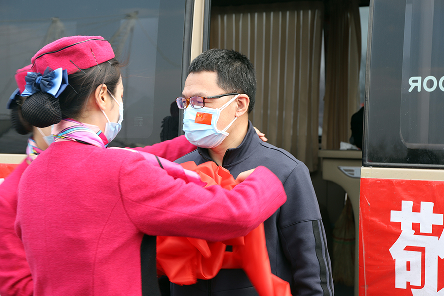 欢迎仪式上,长春市卫健委党组书记、主任马平向白衣战士致敬,他代表全系统近万名职工,欢迎大家凯旋,欢迎大家全身平安归来。“两个多月的时间里,大家克服了很多困难,诠释了白衣天使无私奉献、大爱无疆的高风亮节,也鼓舞着长春市全系统的同志坚守抗疫一线,把长春的抗疫工作完成的非常出色,得到了市委、市政府的高度赞扬。”马平主任说,武汉是英雄的城市,长春也是一个英雄的城市,每一位普通的医务工作者都是英雄,在国家和在病人最需要的时候,义无反顾,舍小家,顾大家,为国家发光发热,为长春争得荣誉,为长春市卫健系统争得荣誉。