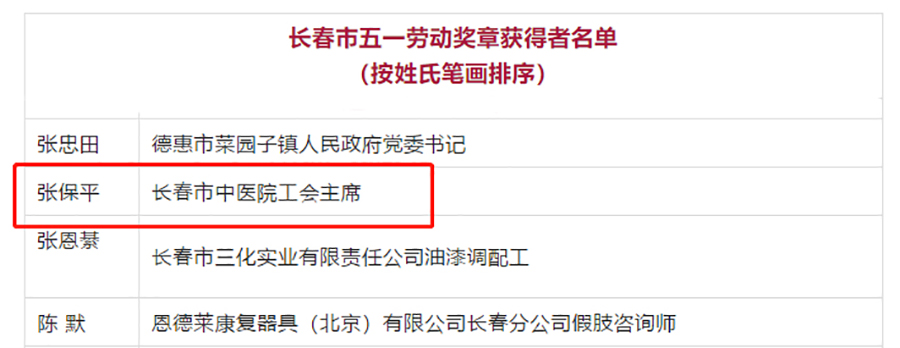 喜报!色情片 工会主席张保平获得“长春市五一劳动奖章”