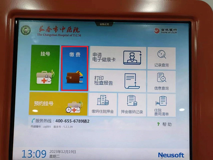 10.支付成功后,自助机会将缴费凭条打印出来,患者拿上缴费凭条前往对应科室进行后续治疗