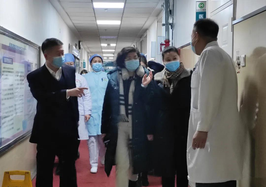 周艳一行首先到达医院平阳部,向一线工作人员致以亲切慰问,详细了解春节期间各科室及门诊的工作布置情况及医务人员排班情况,并与副院长钱锐一起为医护人员送上了美好的祝福。