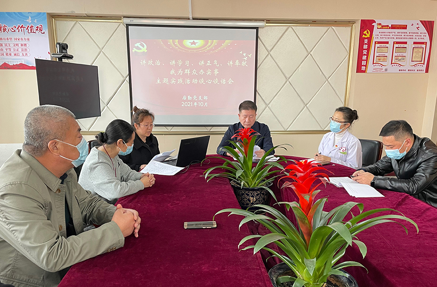 疗区第二党支部召开了“讲政治、讲学习、讲正气、讲奉献,我为群众办实事”主题实践活动谈心谈话会。通过开展面对面谈心谈话,查找差距,提升全体党员的政治素质,保持党员的先进性,进一步强化“四个意识”。医院纪检委书记杨宏彦出席会议。会上,大家结合工作实际,从自身出发,深入挖掘自己在“四讲”和“我为群众办实事”主题实践活动中存在的不足与差距,并根据具体工作落实的情况确定今后整改的方向。“我为群众办实事”主题实践活动不是形象工程,不能在群众面前做做样子、拍拍照片、写写简报就交差了事,这样好事办得不实,最后办成了形式。今后,大家要脚踏实地开展好“我为群众办实事”的各项活动,利用共驻共建的有效资源与社区建立长期联系,开展义诊和讲座等相关利民、便民和助民活动。