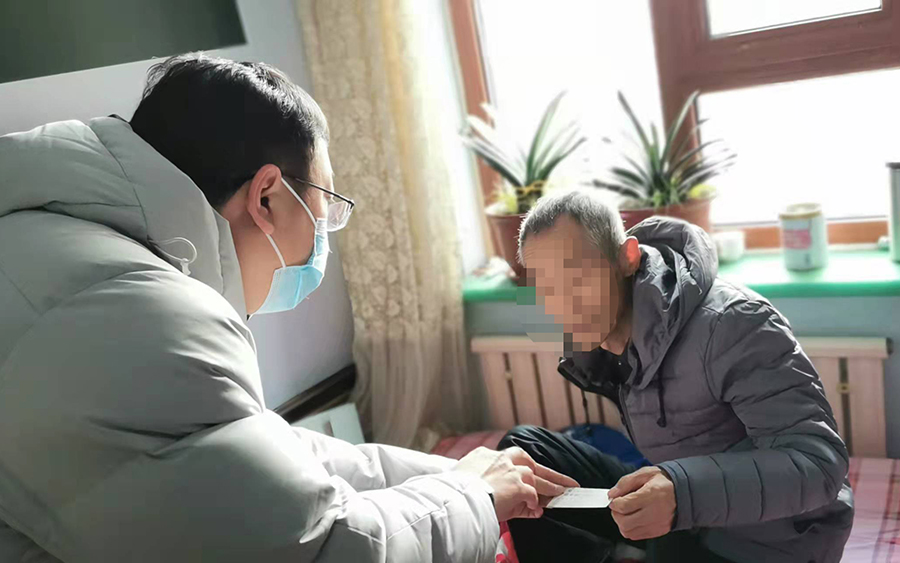 作为疗区第三党支部的帮扶对象,韩先生因患肝病失去劳动能力,其母亲早年因肝病去世,其父亲也因胸腔积液需长期治疗。袁鹏书记在得知情况后,多次打电话询问情况,希望尽党支部所能帮助韩先生父子,让他们实实在在地感受到党的关怀和温暖。