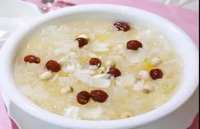 【做法】取干百合、莲子(带芯)水中泡发30分钟,干百合、粳米、莲子一同放于锅中熬煮一小时,快熟时加入冰糖。