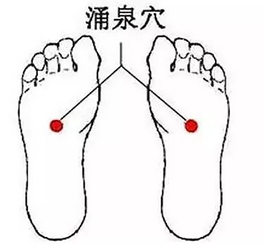 涌泉穴具有滋肾护肾、镇静安神之功。冬夜睡前最好用热水泡脚,以右手搓擦左足涌泉穴,左手搓擦右足涌泉穴,每天睡前、醒后各一次,可反复摩擦30-50次,以足心感到发热为度。