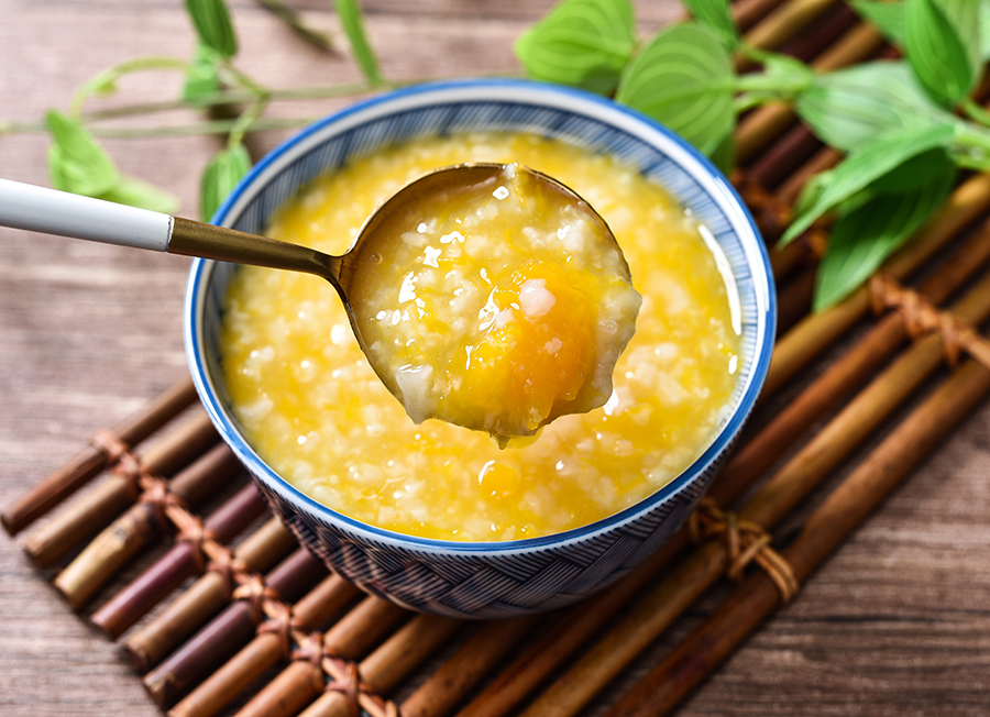 【材料】南瓜50克,山药50克,粳米100克,盐少量。