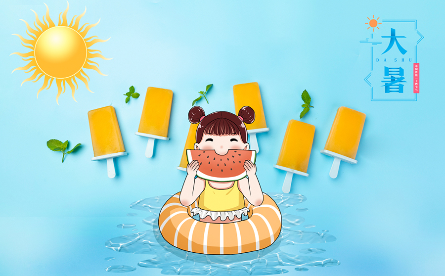 大暑时节,汗出较多,饮食应清淡、易消化为主,以清为补,补气清暑,健脾养胃。及时补水,温开水最为适宜,适当补充糖盐水,冰水及冷水少饮为佳。适当多吃些具有清热解暑、补气健脾、生津止渴功效的食物,如西瓜、苦瓜、黄瓜、冬瓜、山药、蜂蜜、莲藕、薏米、绿豆等;减少寒凉性食物的摄入,如冰水、冰激凌、冰镇水果等,尤其对于脾胃虚寒的人来说,更应格外注意,否则很容易导致寒邪伤脾害胃,出现恶心呕吐、腹痛腹泻等症状。白扁豆、薏苡仁、莲子、芡实等具有很好的健脾作用,是脾虚患者的夏日食疗佳品。