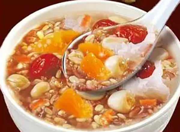 五行养生粥;所谓“五行”,其实是指绿葡萄干、去核红枣、黄豆、去芯白莲子、黑米。提前将食材泡发一夜,然后共同熬制成粥,操作方便简单。但是此粥的功效可不简单,大家注意没有,五种食材对应五种颜色(青、红、黄、白、黑),遵循中医五色对应五脏,滋补脏腑、调和阴阳。